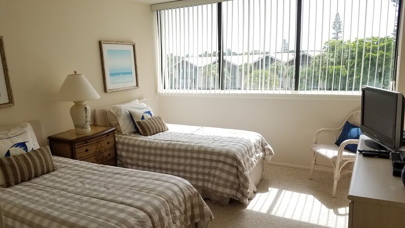 Just across the street from the acclaimed #1 Beach in the US. This beautiful two bedroom/ 2 bath condo has all the comforts of home! This condo offers a fully equipped kitchen, spacious living room, dining area, washer and dryer and balconies off of both the living room and dining room. Linens and towels are also provided. The facilities include a heated pool, tennis courts and a covered pavilion with grilling area.