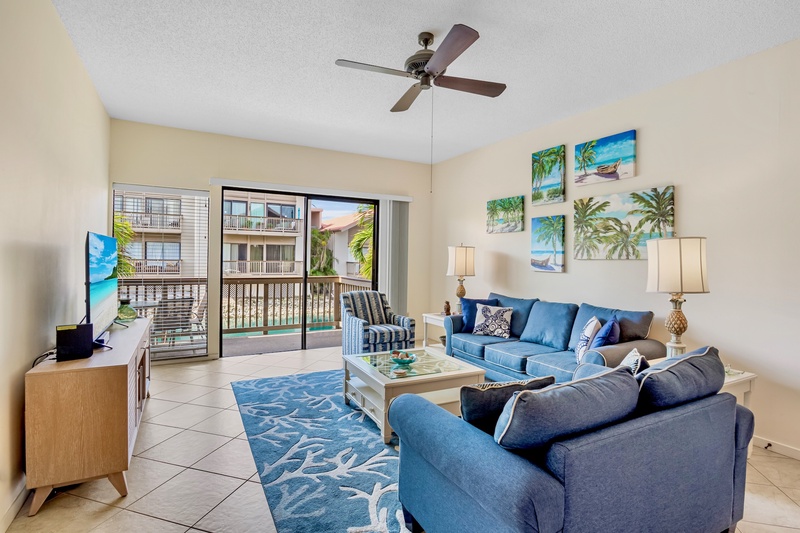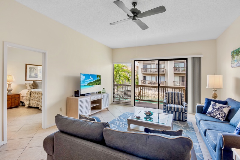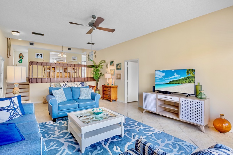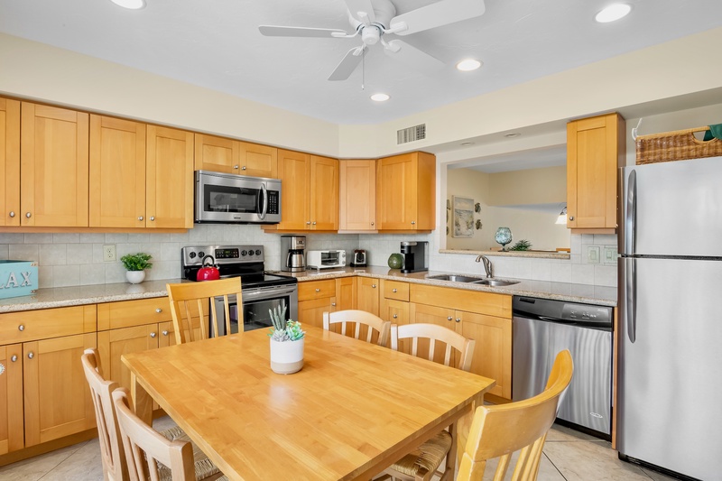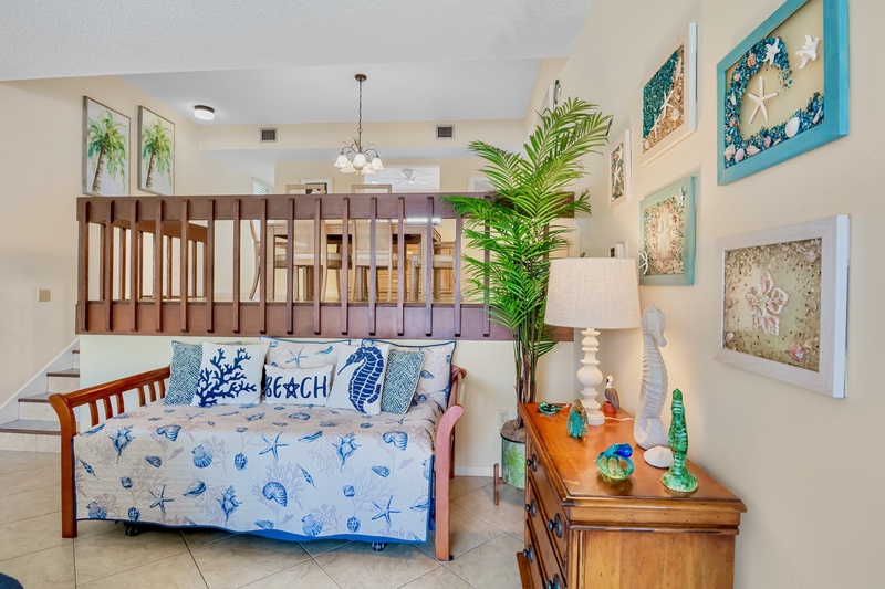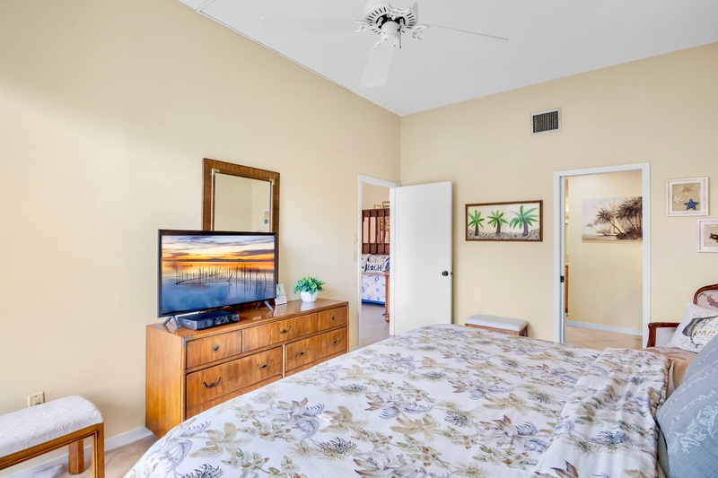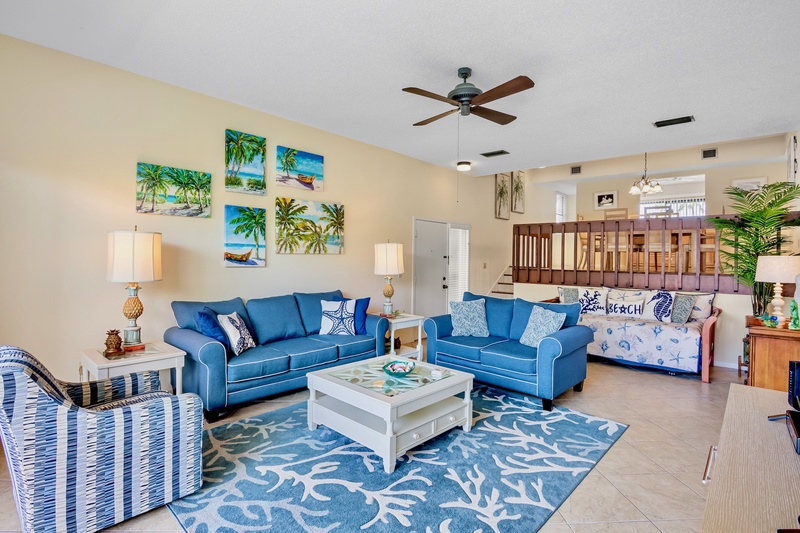 Lake house offers a generous bi-level layout that includes separate dining and living rooms spaces. The eat-in kitchen is fully stocked with pots, pans, dishware, flatware, and has full-sized appliances, including a dishwasher, microwave and washer and dryer for your convenience. Off the large living room there is a balcony overlooking the grounds. The master bedroom suite also opens onto a balcony and has an en-suite bathroom with closets and dressing area. The second bedroom has an adjacent full second bathroom. Lake House offers central A/C, ample closets and storage space, high-speed Internet, cable TV in the living room and each bedroom, and garage parking for one car. The development includes a private pool, covered pavilion area with a BBQ, a picnic area and tennis courts. This Lake House unit is right across the street from Siesta Key public beach, making a splash in the ocean or just a walk on the sugar sand beach a just a few steps away.