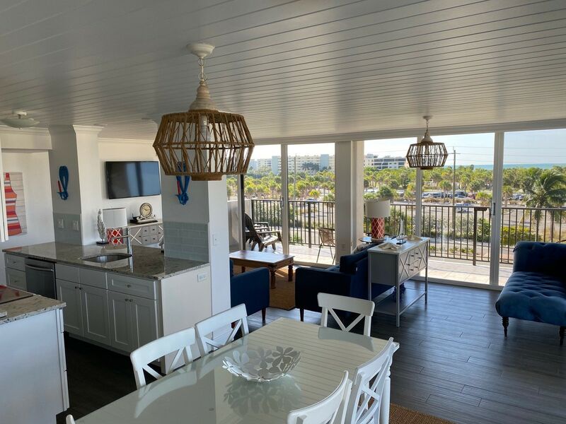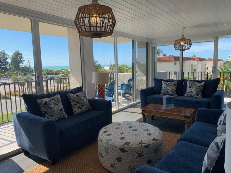Looking for an amazing location with access to the most beautiful beach in the country and close to the famous Siesta Key Village? Look no further! This 2-bedroom, 2 bath condo (sleeps 6) sits directly across from the main entrance of Siesta Key Beach, voted #1 Beach in US. This large condo is light and bright with floor to ceiling windows, 2 large balconies, and has a great view of the ocean. It's stylish and recently renovated with everything you need for a restful and memorable vacation. Comes with beach chairs, umbrella beach towels and outside parking for 2 cars.