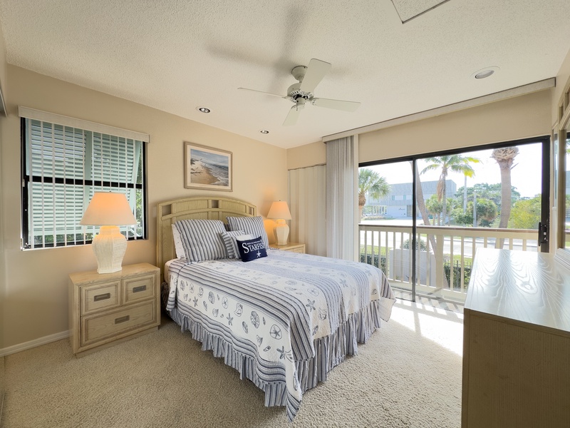 Our House at the Beach is located directly across the street from Siesta Key Beach, home to mesmerizing white sands and unforgettable Florida sunsets. This complex is set around a scenic lake and features a private community pool, a covered pavilion area with a BBQ, a picnic area, and two tennis courts for guests to enjoy. This beautiful and very private townhome unit includes a fully equipped kitchen with cooking essentials and a modern kitchen table. It allows for easy guest access with few stairs upon entry and inside, and with no unit above it will ensure your stay is quiet and relaxing. After fun-filled days spent in the Florida sunshine, relax on the large sectional couch or on the balcony that boasts water views and has comfy seating. The primary bedroom has a King bed, a spacious walk-in closet, and an ensuite bathroom with a walk-in shower. In the guest bedroom is a Queen bed; in the hallway bathroom is a shower and tub combination. The condo has a washer and dryer, so your beach towels are always fresh! Pack your bags for a great vacation at Our House at the Beach!